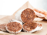It's ideal for cheese and wine platters, a charcuterie board, perfect addition to salads, use it as stuffing, as a snack on its own, in Greek yoghurt or cut into thin slices and make your favourite sandwich or panini with it. Quite simply, you can use vegan fig salami wherever you use meat salami, fresh or dried figs.