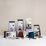 Coffees: 100gr organic traditional Greek coffee and 4 x 100gr aromatic Greek coffees with bergamot, chestnut, cardamon and rose & mastic.