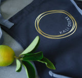 This apron is Made in Australia, from a beautiful, durable, high quality cotton canvas that will take the heat of a busy kitchen. It's available in two colours, natural and charcoal, and it features super-comfortable and secure, crossover straps with attractive and functional brass ‘D’ rings. The crossover straps distribute the weight of the apron more evenly across your body, eliminating neck-strain and tension caused by aprons with neck-loops. This hip apron is further enhanced by the stunning gold and charcoal embroidered Kali Orexi logo!