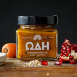Our organic producer "Ωδή στό Ρόδι" Ode to Pomegranate is a family-run business that cultivates pomegranate fruit with love, passion and care in their organic fields in the foothills of Mountain Olympus, the home of the ancient Greek gods. The fields are free of pesticides, herbicides and chemical fertilisers. Their delicacies produced are so fresh, flavoursome and pure, whilst respecting the environment and the natural lifecycle of our ecosystem.