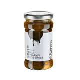 At the start of each Mediterranean summer our passionate food artisans, Idiston from Peloponnese in Greece, select by hand one by one the best small and unripe figs to produce this delicious fruit preserve. Idiston is a family-run business full of love and passion for traditional recipes of natural fruit preserves. This elegant and aromatic fig spoon sweet with almonds is produced with the use of traditional methods and it is conserved thanks to homemade syrup, consisting purely of sugar and water, without the addition of any colourants, preservatives, artificial ingredients or glucose syrup.