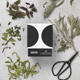 Grek teas have been produced ethically and sustainably in Peloponnese and Macedonia without the use of chemicals or pesticides, hand-picked to arrive in pristine condition, and dried using traditional methods. The flavour and strength of herbs changes from year to year, so the obsessive process of ‘master blending’ – tinkering to get the balance just right – never ends. Sage and lemon verbena are the main ingredients here; the sage leads and the lemon verbena adds depth and sophistication. The peppermint brings freshness to the aftertaste. Lemon balm gently binds together all of the flavours.