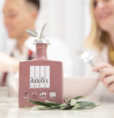 Glass housing for pourer can also be used to sniff and taste olive oils in a traditional manner.