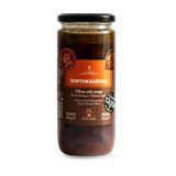 Portokalenies is a magnificent creation of superior organic gourmet kalamata olives, infused with orange juice, orange peel, bay leaves, fennel seeds, vinegar and lemon juice.